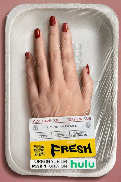 Fresh הוא סרט מקורי של Hulu בכיכובה של דייזי אדגר-ג'ונס כאישה רווקה בשם נועה שמחפשת אהבה באפליקציות היכרויות. אבל אחרי שפגשה גבר בשם סטיב (סבסטיאן סטן), היא מסכימה לצאת איתו לטיול סוף שבוע רומנטי. הקאץ' היחיד הוא שהיא מגלה שהוא קניבל שצורך ומוכר בשר אדם.